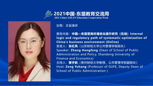 2021年9月24日,受贵州财经大学公共管理学院的邀请,公共管理学院院长张红凤教授线上参加了由中国-东盟教育交流周组委会、贵州财经大学主办,贵州财经大学公共管理学院承办的“中国-东盟营商环境治理人才培养论坛”。来自中国-东盟政府机构、海内外高校、科研院所和社团组织的100多位领导、专家、学者参加本次论坛。