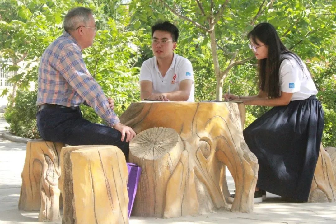 四个月的时间,认识了很多兵团人,他们的故事,他们所坚守的兵团精神,已经深深地触动了我。中秋节前往敬老院开展活动时,认识了一位上世纪六十年代从上海来到新疆的老军垦。当年的他也是听到“到西部去,到农村去,到祖国和人民最需要的地方去”的口号,燃起了内心的激情,不顾家人反对,偷了户口本报名来到这里成为一名兵团人。五十多年的时间里,抗起锄头,屯垦戍边,放下锄头,教书育人。转眼,他已从青葱少年变为耄耋老人,可讲起那段青春岁月,依然是热血沸腾。我们出生在不同的年代,但做出了同样的选择。“长江后浪推前浪,事业自有后来人”,从他身上,我又一次汲取到了信仰的力量,更加坚定、更加鲜活、更加饱满。回望来路,放眼未来,在无数前辈披肝沥胆开创的西部事业上,我辈更应踏实勤勉,在这天山脚下生根发芽,扛起我们这代人的职责和使命。