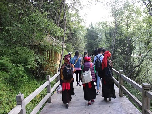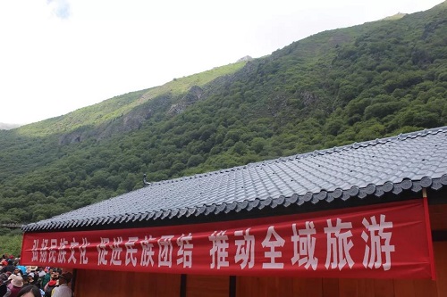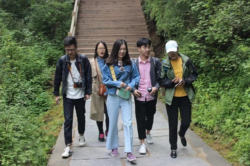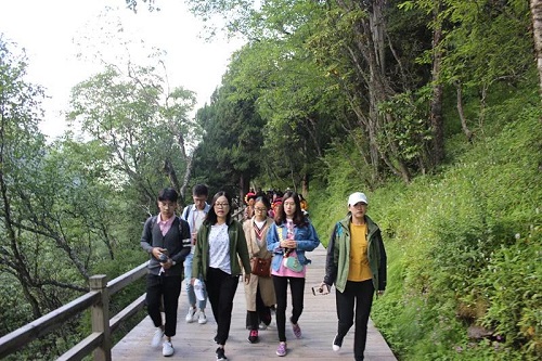 7月27日,调研团队在黄龙旅游局相关工作人员的陪同带领下一起登上素有“瑶池仙境”之称的黄龙。在登山途中,工作人员向团队一行人介绍了黄龙地区在旅游与文化结合方面的一些状况及存在的问题,譬如如何打造黄龙的特有文化品牌,如何能更好地利用黄龙地区的发展带动周边乡村的脱贫致富等。