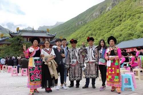 队员们被眼前的景象所震撼与折服,也更加坚定了要帮助黄龙与宣传黄龙的信念与决心。这里游人如织,调研团队便对游客进行了调查,了解到游客眼中旅游和民俗文化的融合情况,以及从游客视角出发,应如何促进旅游与民俗文化的进一步融合。