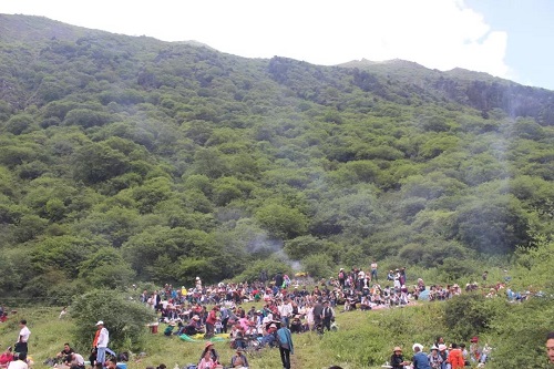 在寺庙周围的草地上,来赶庙会的人们席地而坐,开怀畅饮,调研团队也趁此机会对他们进行问卷调查,了解到了当地少数民族当前的文化与旅游业的融合情况。