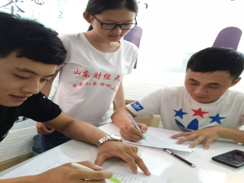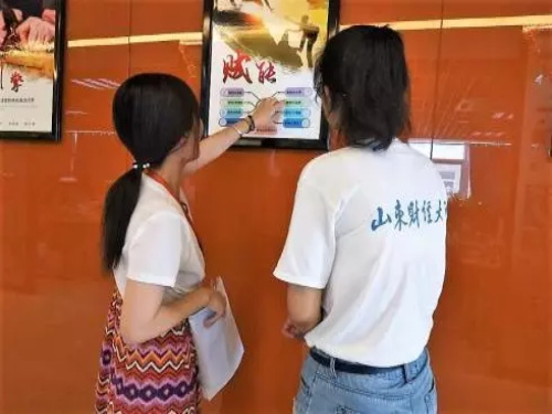 团队的15名队员分为三个小组先后走访了泰安影响力电子商务有限公司、刘台电子商务服务站、临沂市绿野合作社、齐尚电子商务产业园、博兴县电子商务产业园等7个平台和企业;并与各地第一书记取得联系,对政府助力扶贫的工作进行了访谈;同时,对三个地区的扶贫受众进行了走访调查,获取100余份有效问卷;完成了为期7天的实地调研。