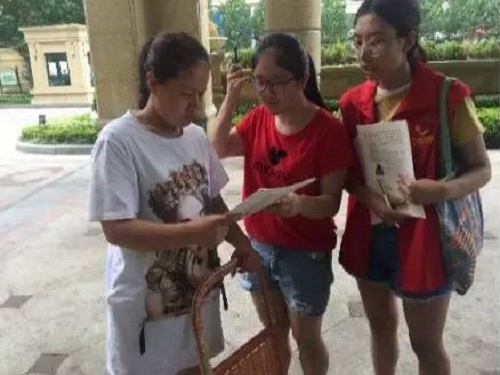 7月9日,队员们来到了济南市章丘区双山街道文化路社区办事处,希望能得到他们的允许与协助。当地的办事人员也一直努力发展志愿者活动,在详细了解团队的调研内容之后,办事处找来两位工作人员,协助队员们进入小区进行问卷调查