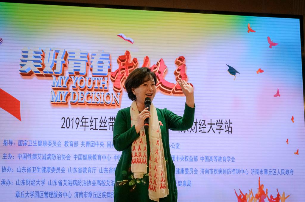 11月25日晚,“美好青春我做主”2019红丝带青春校园行活动走进我校。央视著名节目主持人、国家卫生健康委红丝带健康大使鞠萍,艾滋病防治专家省艾滋病防治协会会长傅继华,济南市疾控中心主任阮师漫等,在圣井校区文化活动中心为大学生上了一堂生动的“防艾课”。校党委副书记赵友春出席活动。