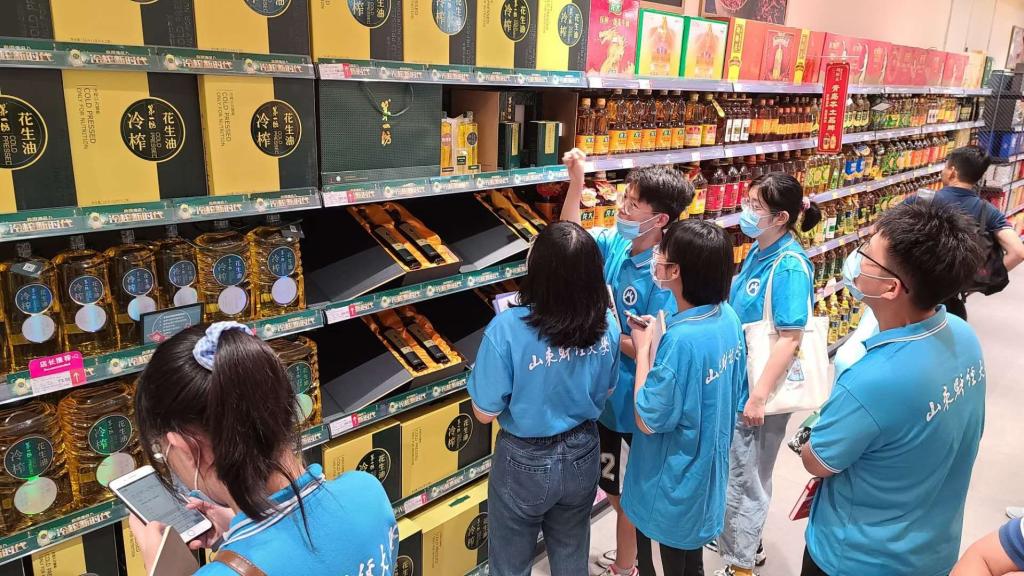 在此期间,我校“三千计划”“我国花生油产品市场现状与冷榨技术发展前景”调研团队,深入企业一线,展开学习调研。他们到莱西良贸凯悦百货商超,了解各品类花生油的销售情况,并对顾客进行深入采访,分析消费者购物心理与潜在消费市场;到莱西第一坊花生油厂,听取了市场部经理陈军对于企业发展情况与核心技术的介绍,实地参观生产车间,并就企业市场运营发展等相关话题展开讨论。工商管理学院副教授毕继东、校团委老师孙炯明一同参与调研。