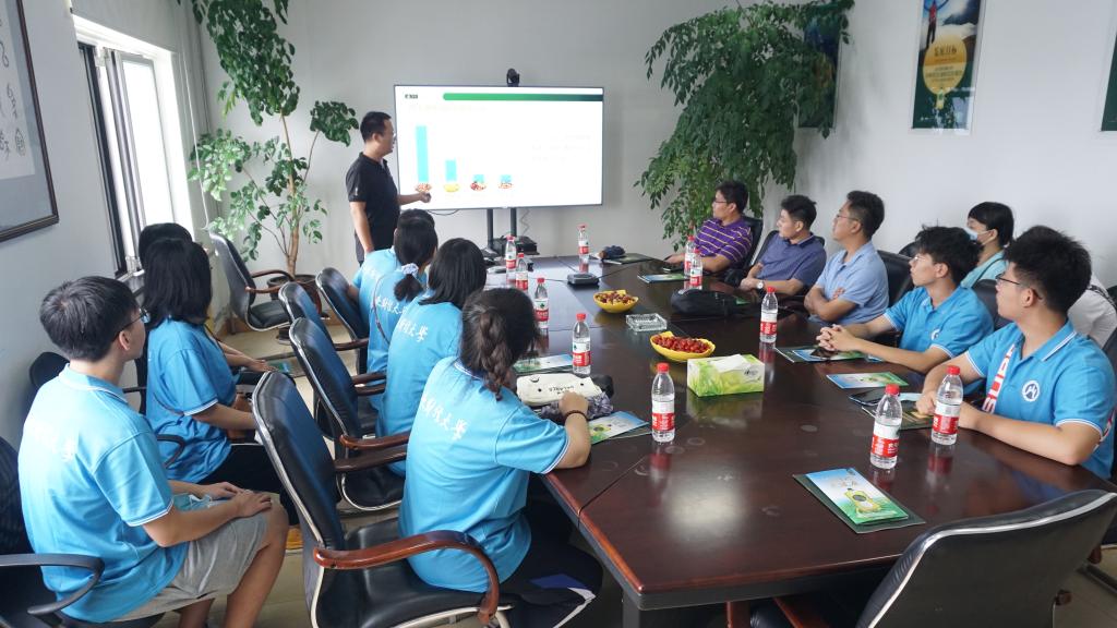图4 莱西第一坊花生油厂总经理、优秀校友曲广坤与队员们交流企业初创经验