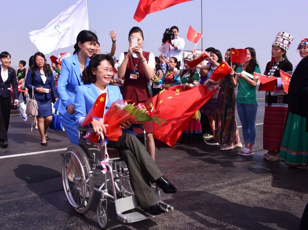 2015年8月2日,张海迪随北京2022申冬奥代表团凯旋回京(来源:视觉中国)