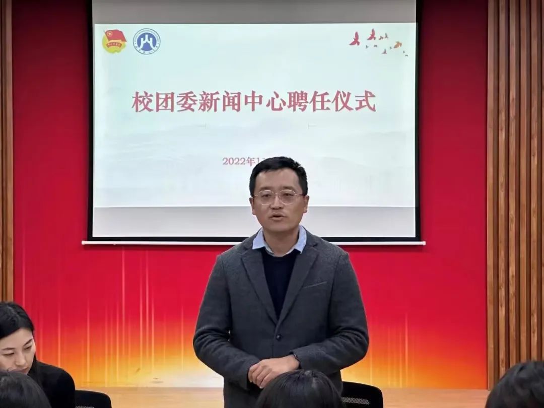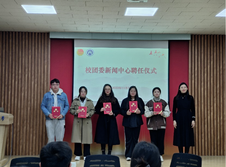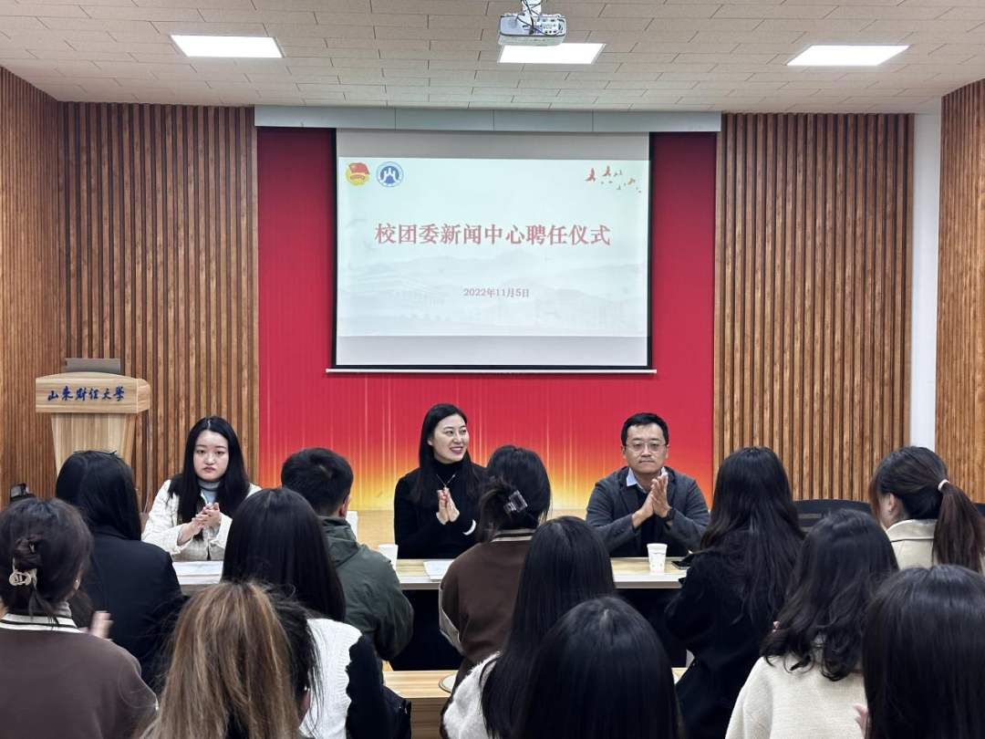 2022年11月5日上午,山东财经大学团委新闻中心学生干部聘任仪式在燕山校区举行。校团委书记王晓迪、副书记邢夏子、校团委老师谭雯雯出席仪式,邢夏子主持仪式,校团委新闻中心全体成员参加。