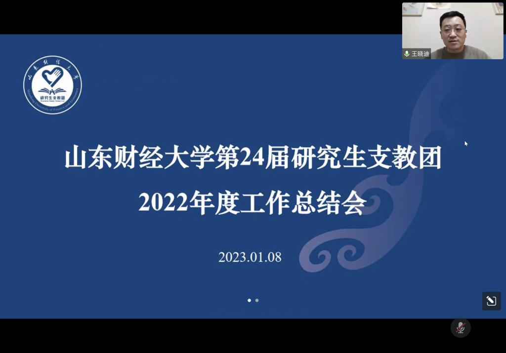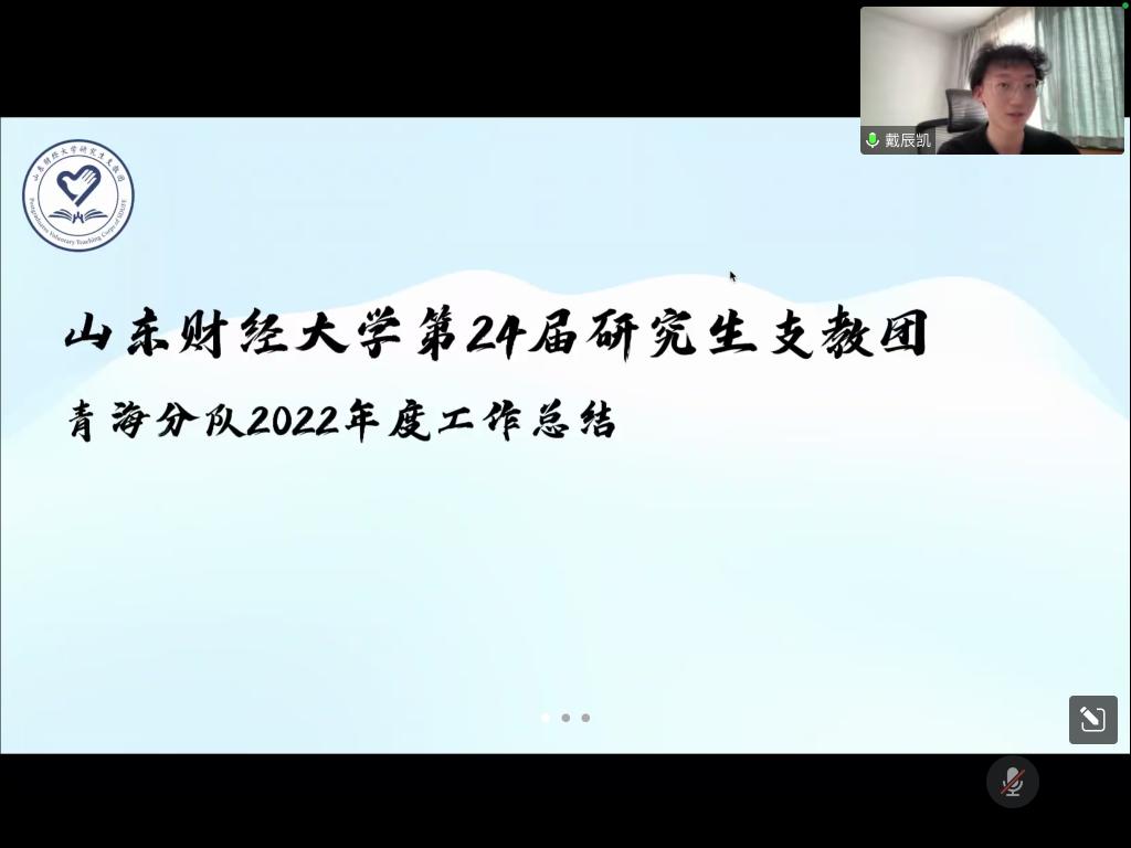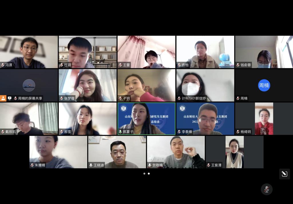 山东财经大学第24届研究生支教团自2022年7月起分别赶赴贵州六曲、水塘堡和青海门源两地三校,开展为期一年的支教生活,至今时间已过半。半年来,9名研支团志愿者始终秉承“奉献、友爱、互助、进步”的志愿服务精神,坚守乡村教育一线,为西部基础教育发展贡献青春力量。1月8日,第24届研究生支教团2022年度工作总结会线上举行,校团委书记王晓迪、副书记邢夏子及学校第24届、第25届研究生支教团全体成员参加了会议,邢夏子主持会议。