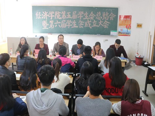 2017年10月24日、25日中午12:30,经济学院第五届学生会总结会暨第六届学生会成立大会分别在舜耕校区2309、圣井校区5306教室举行。院党委书记吴红文,副书记任海伦,院团委就业办主任裴斐,辅导员付雯、朱海林出席,第五届学生会主席团、部长和第六届学生会全体成员参加会议。本次会议由院团委书记兼学工办主任周新秀主持。