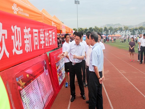在迎新过程中,我们既见到有脚踝受伤坐着轮椅但仍然希望在开学第一天感受大学氛围的新生,又有来自各个少数民族跨越多个省市,历经将近两天车程来到学校的莘莘学子。李书记、梅书记和他们进行了亲切交流,并嘱咐他们要积极参与大学生活,学习文化知识,有什么困难及时向学院反映。