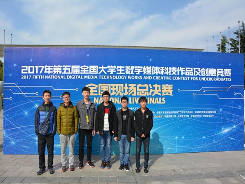 2017年第五届全国大学生数字媒体科技作品及创意竞赛(以下简称“竞赛”),由中国人工智能学会主办,上海大学、北京印刷学院联合承办,中国传媒大学、北京林业大学、北京理工大学等高校协办,由全国大学生数字媒体科技作品及创意竞赛委员会具体管理。本次竞赛共有来自全国48所高校的359件参赛作品,经过初赛评审,273件作品入围全国现场总决赛,最终共评出一等奖40项,二等奖74项,三等奖137项。由计算机科学与技术学院党委副书记吕海霞带队、迟静老师指导的两支学生队伍,围绕影视与动漫设计主题进行了设计与创造,由孙华威、韩靖、李宗威、张浩、高小涵同学组成的团队所制作的原创动画:《爸妈,我回来了》,获得国家二等奖;由冯卓锋、李粒、管浩宇、晁博、董召栋同学组成的团队所制作的原创动画:《夺食》,获得国家三等奖。