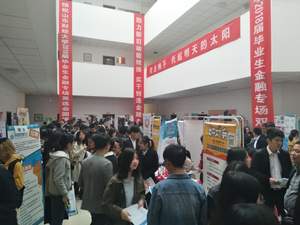 本次“双选会”经过金融学院前期联系、认真审核、积极备案,共组织80余家企业参会,均为与金融相关度较高的银行、证券、保险、期货、基金、投资管理等用人单位,共提供需求岗位200余个、需求人数1500余人,主要涉及金融、保险、经济、会计、管理等相关专业。“双选会”吸引了我校及济南大学、齐鲁工业大学等兄弟院校近千名学生参与,我校低年级的一部分学生也前来了解就业形势与行业需求。据不完全统计,当天用人单位共收到简历900余份,约有300余名毕业生与用人单位达成了就业意向。另外,金融学院当天还为用人单位安排了20余场宣讲会及面试活动。