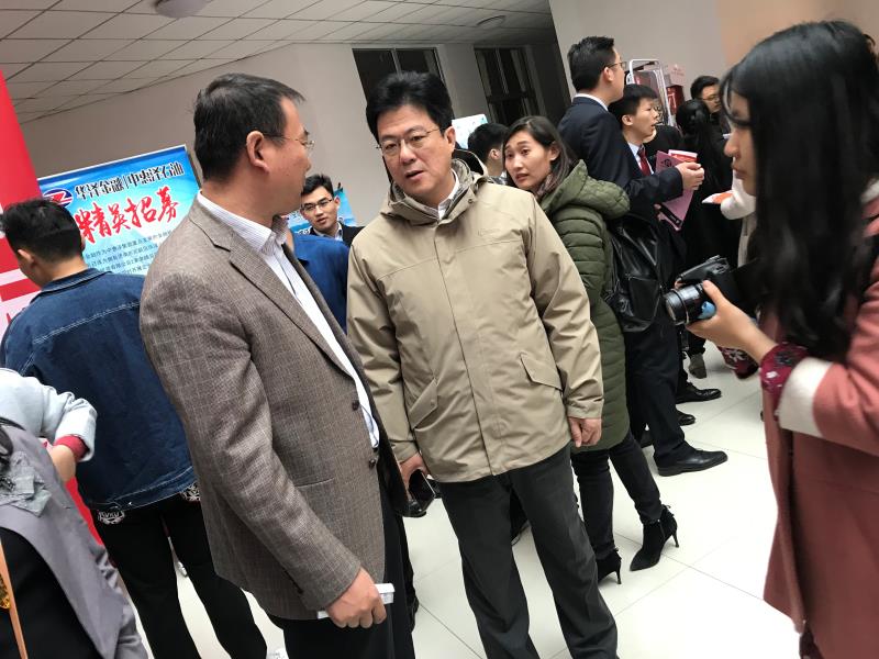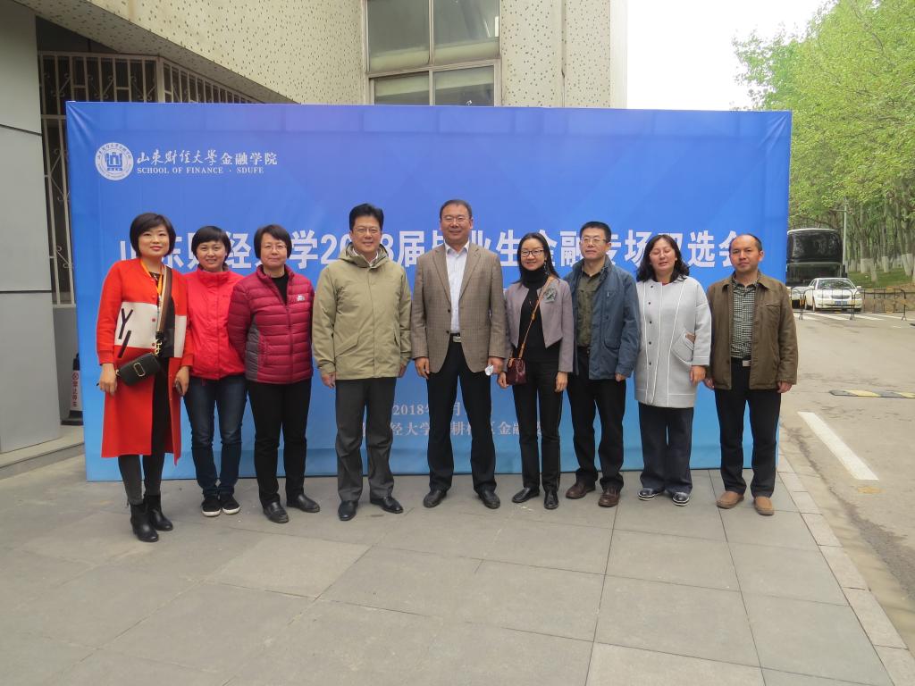 4月14日上午,我校2018届毕业生“金融专场双选会”在舜耕校区金融楼举行。山东财经大学就业指导处处长杨哲、副处长杜丽娜,党委保卫部部长徐明春,金融学院党委书记吴红文、副书记范志毅、康亚通莅临现场指导工作。