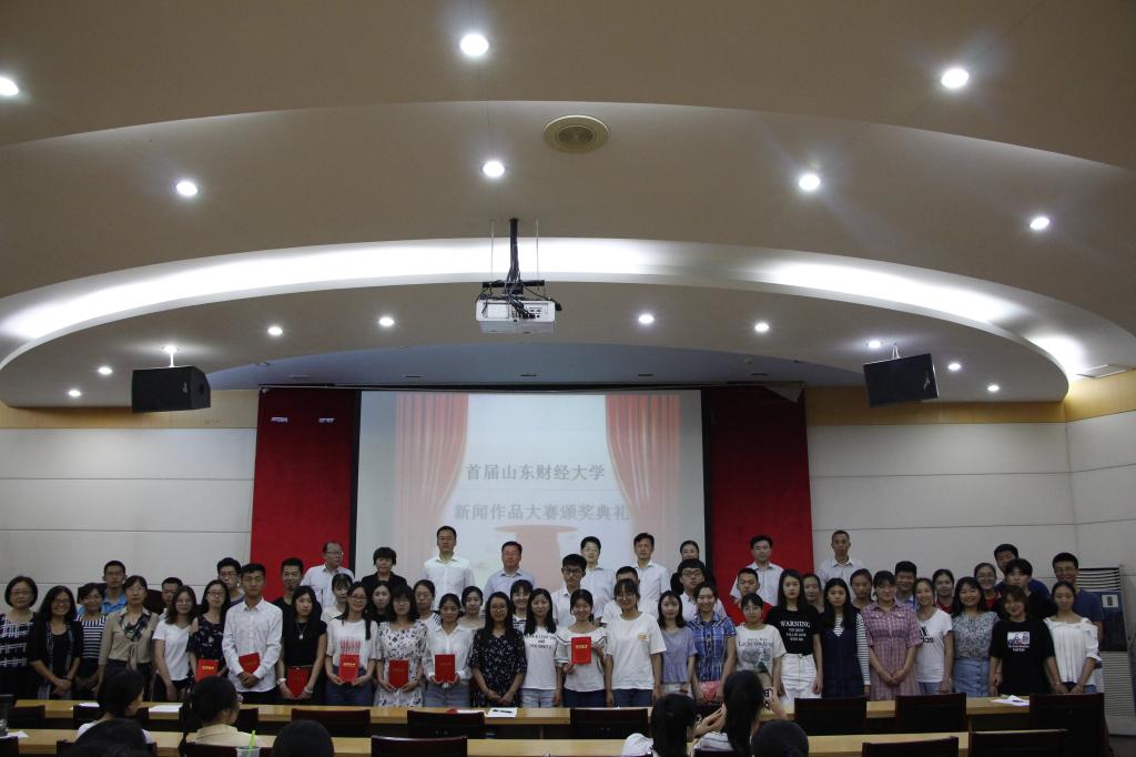 6月26日下午,由我院承办的山东财经大学首届新闻作品大赛颁奖典礼在舜耕校区国际学生公寓二楼会议厅举行。山东财经大学副校长张书学、中国新闻社山东分社社长邱江波、校党委宣传部部长于洪良、校学生工作处副处长孙丽华、校团委副书记张超,我院党委书记姜竹青、院长孙丽君、党委副书记李开传、副院长牟雷出席本次会议,新闻系教师代表、获奖同学代表以及2015级新闻系学生也参加了此次会议,颁奖典礼由学院党委书记姜竹青主持。