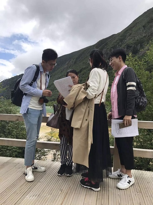 队员们被眼前的景象所震撼与折服,也更加坚定了要帮助黄龙与宣传黄龙的信念与决心。这里游人如织,调研团队便对游客进行了调查,了解到游客眼中旅游和民俗文化的融合情况,以及从游客视角出发,应如何促进旅游与民俗文化的进一步融合。