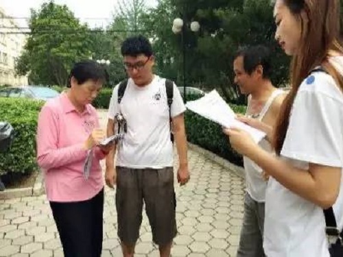 7月9日,队员们来到了济南市章丘区双山街道文化路社区办事处,希望能得到他们的允许与协助。当地的办事人员也一直努力发展志愿者活动,在详细了解团队的调研内容之后,办事处找来两位工作人员,协助队员们进入小区进行问卷调查