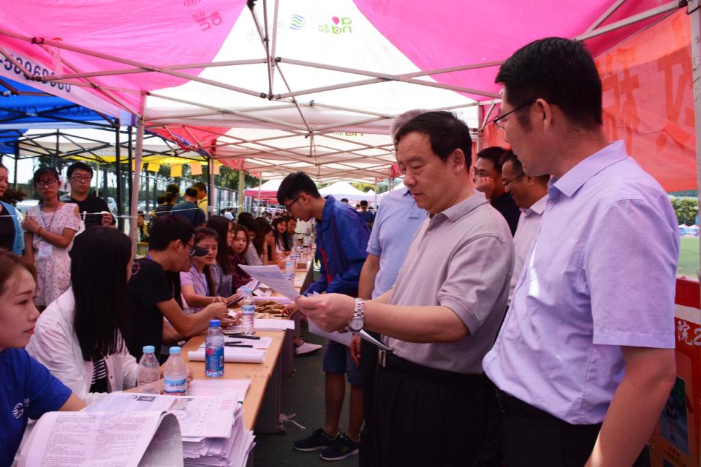 9日上午,校党委书记王邵军及学校其他相关部门负责人来到圣井校区视察迎新工作。领导老师们仔细查看了学院迎新宣传板和专业成果介绍;走进学院迎新会场,与学院迎新工作人员亲切问候;并与学院领导就学院迎新各方面情况进行了了解与交流。