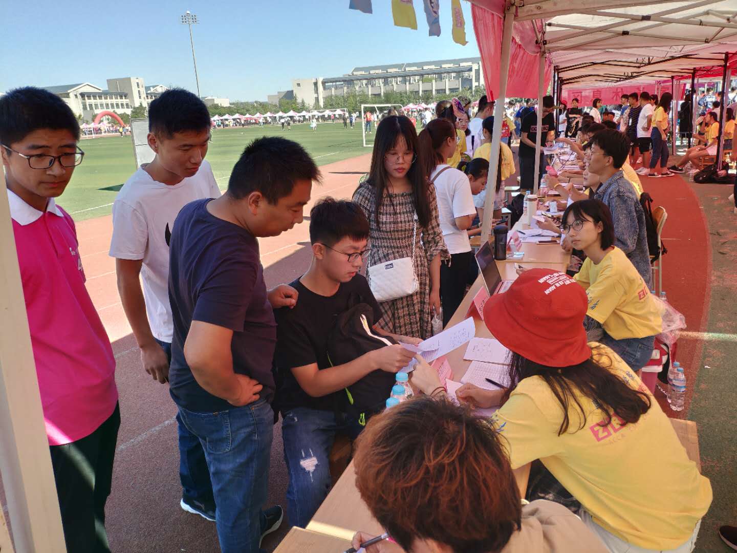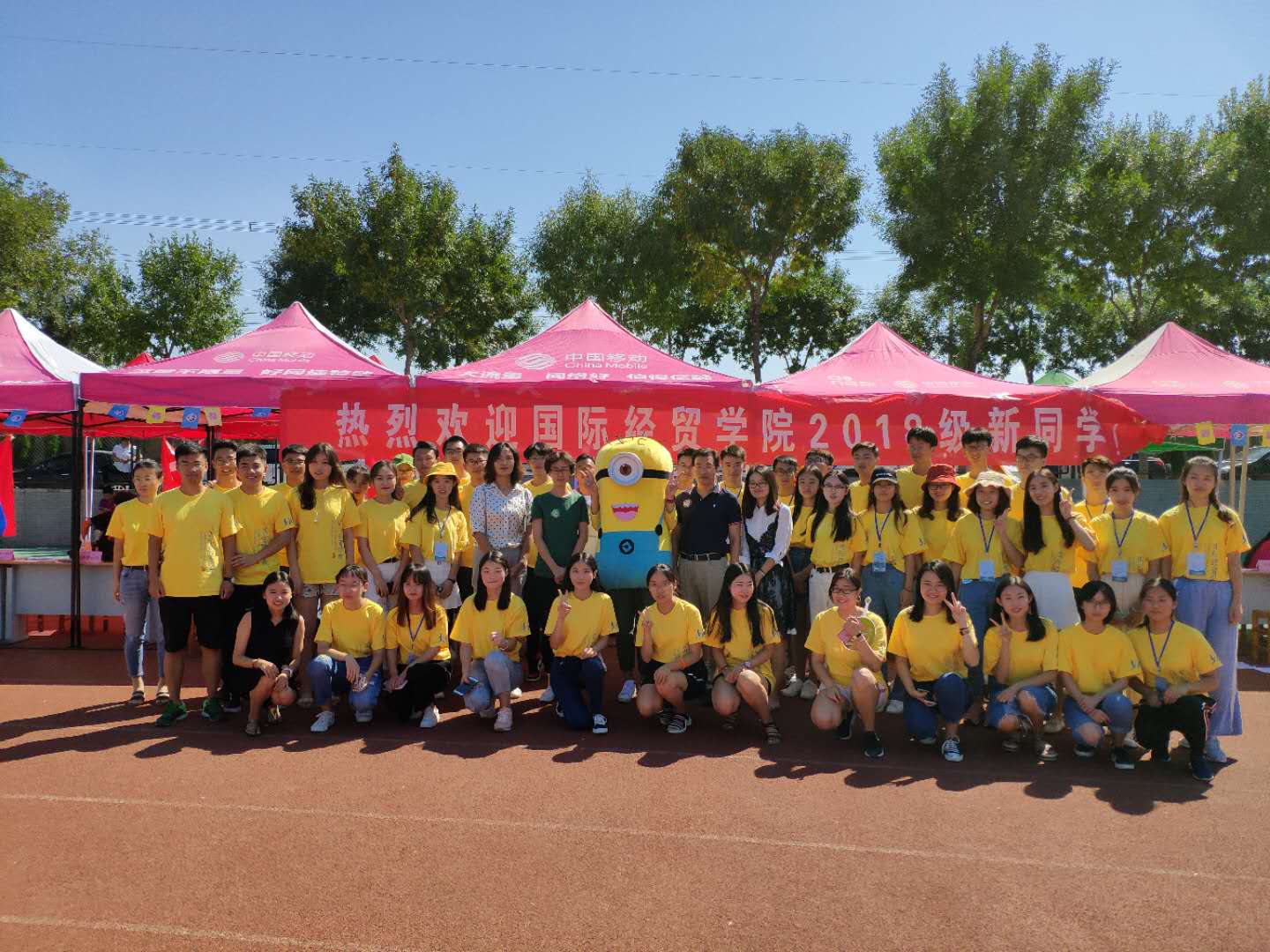 9月9日,为迎接2018级本科新生报到,学院党委书记邓迎迎、副书记郝秀峰、圣井校区各位辅导员老师和学院迎新志愿者们一同早早来到操场,精心组织开展迎新报到工作。