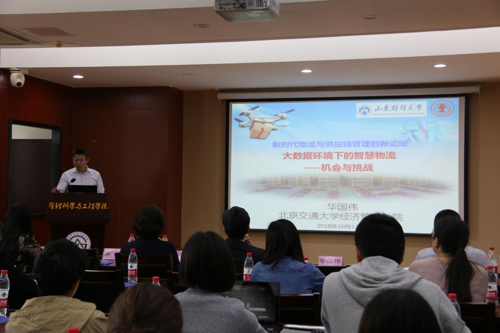 论坛邀请了北京交通大学经济管理学院副院长华国伟教授、北京交通大学交通运输学院博士生导师郎茂祥教授、山东大学管理学院副院长孟庆春教授、中国铁道科学研究院集团有限公司运输及经济研究所王丹竹博士、山东师范大学商学院朱立龙副教授、德国法布劳格物流咨询中国区公司董事长张芸女士和我校李佳路博士等7位专家,围绕着新时代物流与供应链的创新发展开展学术交流。