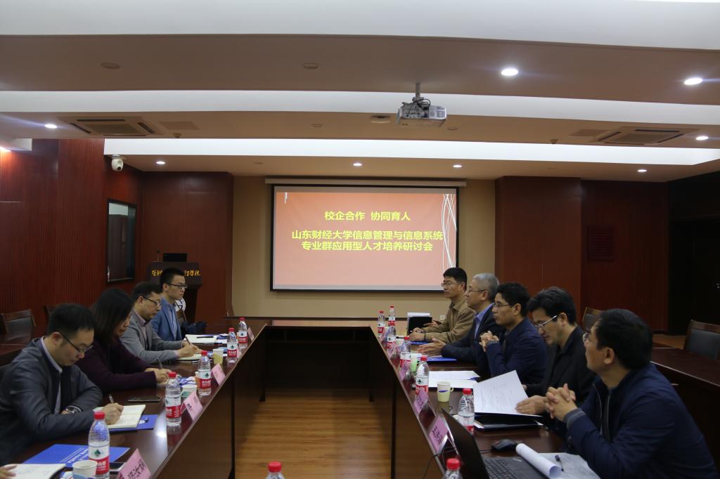 10月24日,由管理科学与工程学院承办的“校企合作协同育人--山东财经大学信息管理与信息系统专业群应用型人才培养研讨会”在燕山校区举行。研讨会邀请了山东省电子商务协会秘书长李俭、山东省云计算中心副主任郭莹、山东顺能网络科技有限公司副总经理巩清贤、北京华清远见科技发展有限公司济南分公司总经理李鹏、山东省校企合作联盟副秘书长郄汝娟等企业和行业专家参加研讨。我校副校长张新、我校管理科学与工程学院院长刘培德、副院长刘位龙以及学院信息管理与信息系统专业群各专业负责人参加了本次研讨会。研讨会由刘培德教授主持。