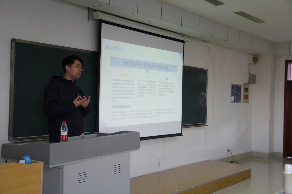 苏鹏超是管理科学与工程学院1998级校友,现任山东省电子商务促进会执行秘书长、济南市电子商务协会秘书长、星宏网络科技有限公司总裁、山东现代电商与物流研究院理事。苏鹏超首先用新零售和传统零售的比较、新零售的现状与模式、趋势来分析零售业的变迁与发展状况,然后从新角色、新内容、新形态、新关系和新理念等方面分析了新零售的主要特征。他提出,阿里和腾讯两大寡头公司主导的竞争情况,正符合新零售的主要特征。在讲座的最后,苏鹏超指出,新零售未来的发展道路上,即使会有壁垒,但依然前景广阔。讲座之后,苏鹏超校友就同学们关心的专业实习实训、就业情况等与同学们进行了充分交流。