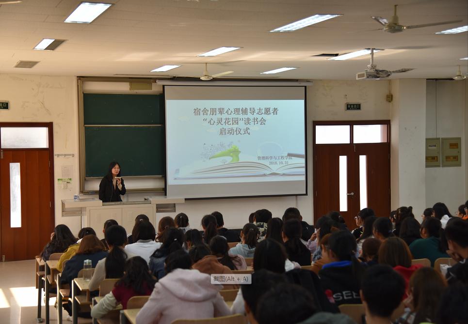 10月31日下午,根据学校相关文件的要求,管理科学与工程学院在明水校区4201教室举办了宿舍朋辈心理辅导志愿者“心灵花园读书会”启动仪式。学院老师、16级和17级全体心理委员及宿舍朋辈心理辅导志愿者100余人参加。