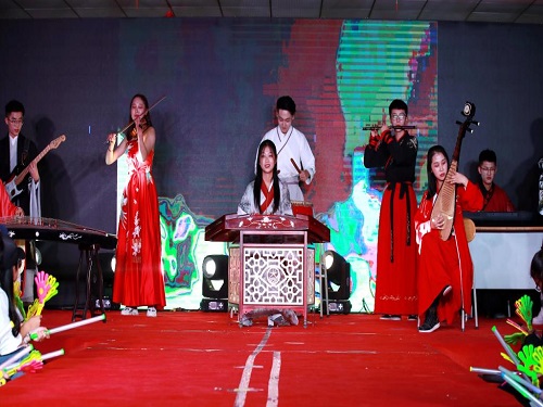 器乐合奏《加勒比海盗》作为本次晚会的开场秀,用激昂的旋律点燃现场气氛,迎新晚会由此拉开了序幕。一袭红衣涌现,古典舞《大鱼》以柔美惊艳的舞姿展现着中华古典文化的精髓。歌曲《走进新时代》唱出了人民当家做主的自豪,唱出了对未来的美好期盼。创意播报《鸡山新闻趣报》以诙谐幽默的语言逗乐了现场观众,赚得满堂喝彩。活力走秀《Natural》、器乐串烧《权御天下》、现代舞《This is our time》展示了财税学子多才多艺的一面,引得全场欢呼喝彩。朗诵《辉煌筑梦四十年》将改革开放四十年的厚积薄发与砥砺前行娓娓道来,铿锵有力的话语让每位财税学子心中涌起无限感慨。话剧《黎明破晓前》以五四运动为背景追忆峥嵘岁月,展现了青年学生的爱国情怀。舞蹈《西域之恋》由财政税务学院新疆籍维吾尔族学子倾情展现,婀娜的舞姿与独特的民族服装带领观众打开异域之门,走进大美新疆。大合唱山东财经大学校歌《梦想花开》以歌声传颂着校园文化,表达了2018级新生对美好大学生活的向往。最后,晚会在歌曲《克卜勒》的优美旋律中缓缓落下帷幕。晚会结束后,学院领导老师们上台与演员合影留念,共同纪念这美好的时刻。