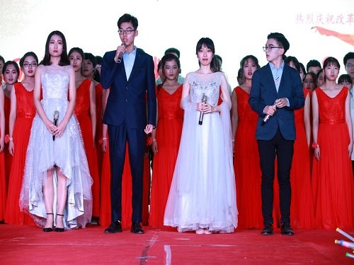 首先,李玉成书记代表学院对为晚会成功举办付出辛勤汗水的所有台前幕后的老师、同学们表示衷心地感谢,并对2018级全体同学提出了希望和要求。一是要不忘初心,坚定理想信念。他指出,作为新时代青年大学生要善于在总结回顾历史进程中把握和认识时代发展大势,要充分认识中国共产党领导和带领全党全国各族人民,经过四十年改革开放的艰难探索与不懈奋斗所取得的举世瞩目伟大成就来之不易,应倍加珍惜。同学们要坚定理想信念,坚定“四个自信”,砥砺前行接续奋斗。二是要牢记使命,勇扛时代重任。他强调,作为青年大学生要牢记习近平总书记殷殷嘱托“青春是用来奋斗的”“幸福都是奋斗出来的”,自觉做到“勤学、修德、明辨、笃实”。要将个人梦与中国梦有机结合起来,刻苦学习,敬业乐群,全面成长成才,在持之以恒奋斗中用自己火热青春创造无愧于党、无愧于祖国、无愧于人民的新时代精彩人生。讲话最后,李书记预祝本次晚会成功。
