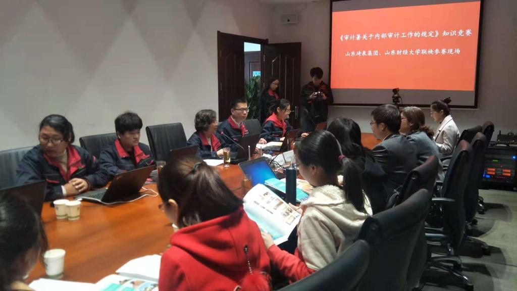 11 月 15 日上午,会计学院党委副书记崔东峰和会计信息化部石贵泉老师带领部分审计专业学生来到琦泉集团总部,共同参加了“《审计署关于内部审计工作的规定》知识竞赛”现场网络答题。