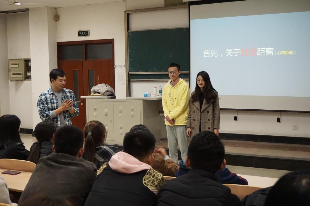 根据学校的相关文件精神,按照学院相关策划要求,管理科学与工程学院“朋辈心理沙龙”暨“心灵花园”读书会系列主题活动有条不紊地推进,11月14日晚,第二期活动“人际交往中的心理学”,以沙龙分享会的形式在明水小区1115教室开展。管理科学与工程学院辅导员、二级心理咨询师沈健主持了本次活动。活动吸引了2017级和2018级 共一百五十多名同学到场。