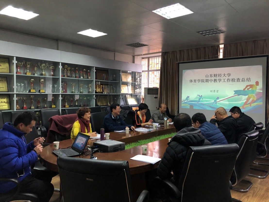 为加强教学管理,稳定教学秩序,推动教风学风建设,提高教学水平和教学质量,由学校教学督导组、党委教师工作部组成的学校期中教学检查组11月16日上午来到体育学院进行期中教学检查。首先学院结合《关于开展2018-2019学年第1学期期中教学检查工作的通知》要求,汇报本学期期中教学检查自查情况。随后教学督导检查了学院的教学档案材料,期中教学检查表、试卷检查评价表、毕业论文(设计)检查评价表等教学材料,检查结束后党委教师工作部首先肯定了体育学院的教学工作,随后对检查中发现的问题提出了整改意见。最后对参会人员就学校的相关文件和政策进行了详实传达和解读,尤其强调“以德树人”和“师风师德”建设的重要意义。