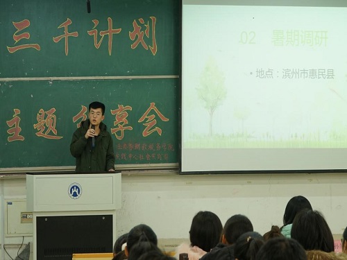 最后财政税务学院副院长马恩涛对本次分享会做出总结发言。他认为每一组分享都很精彩。每一组的分享从不同侧重点出发,有助于新生对“三千计划”活动的了解。他阐述了实践的重要性,认为同学们在社会实践中应提前做好充分准备,多学多看多问,从多方面获得知识。最后马恩涛副院长祝愿明年“三千计划”社会实践调研能取得更优异的成绩。