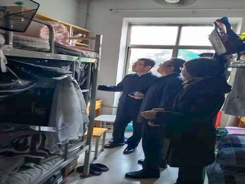 对于大三的同学们,李玉成书记提出,步入冬季天气渐冷,冬季是流行感冒的多发季节,同学们在预防感冒的基础上要常开窗通风,保持宿舍空气新鲜。他建议同学们及时关闭电子设备电源,在避免费电的同时,也防范了意外的发生。在检查男生宿舍时,老师们细心指导学生整理内务,提醒同学们要及时清理废弃物品,只有宿舍整洁,在校生活才会更加舒适。