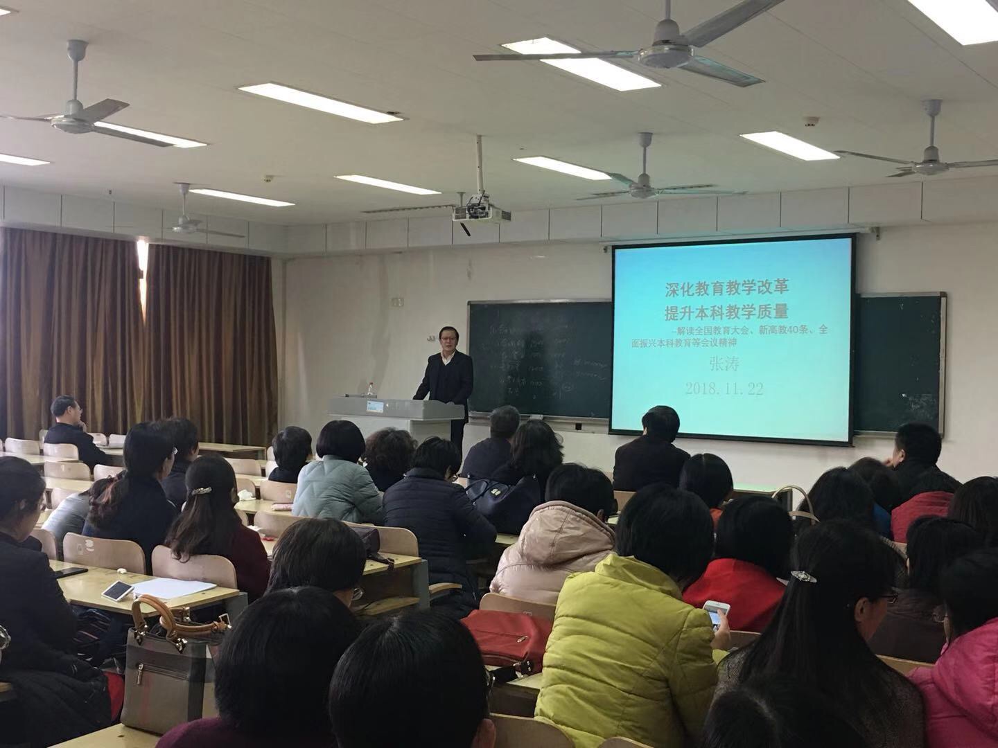 11月22日下午,会计学院召开全体教职工大会,会计学院党委书记张涛做了题为“深化教育教学改革、提升本科教学质量”的报告,解读全国教育大会精神、学习教育部全国高等学校本科教育工作会议以及新高教40条,分析当前本科教育形势、畅谈高等教育“创新”理念。
