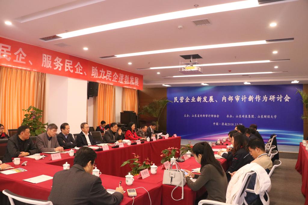 11 月 28 日由山东省内部审计师协会主办、会计学院与山东琦泉集团共同承办的“民营企业新发展、内部审计新作为”研讨会在琦泉集团总部 21 楼多功能会议厅成功举办。山东省内部审计师协会会长陈朝豹,山东省审计厅内部审计指导中心主任温国栋,济南市审计局副巡视员沈鲁,山东财经大学研究生院院长毕秀玲、会计学院党委书记张涛、副教授石贵泉,琦泉集团董事长董统玺,中国微金融·证券法律研究中心主任喻胜云,山东众成清泰律师事务所主任唐向东以及驻济金融机构、企事业单位代表、新闻媒体编辑记者共同参加了活动。