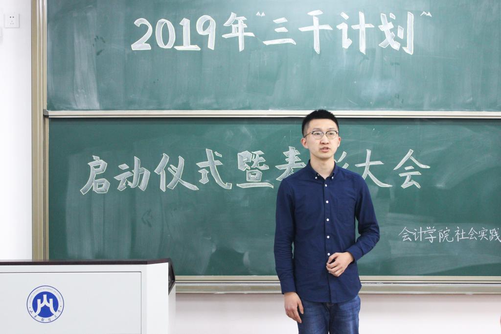 4月18日下午,会计学院2019年“三千计划”启动仪式暨表彰大会于圣井校区6216教室举行。校团委杨静老师应邀出席,学院党委副书记付亚、辅导员张慧娟、岳勇、曹婧、孙炯明参加活动。