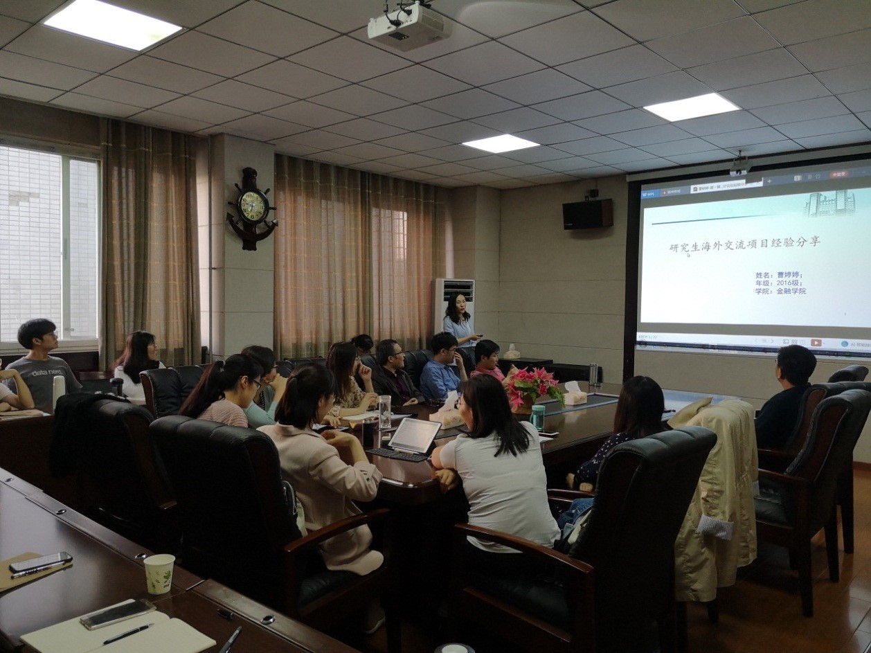 金融学院2016级博士研究生黄慧和曹婷婷参加了由山东省教育厅资助的“2018年山东省博士研究生海外研修计划”,分别赴中国香港和澳大利亚珀斯市参加了“第三届经济、金融和统计国际会议”和“第一届全球华人会计高峰论坛”。5月13日,在金融学院314会议室,黄慧和曹婷婷两位同学分别就如何搜寻并申请国际学术会议,如何进行参会前的准备,如何在会议现场进行论文汇报,以及金融、会计等应用经济学领域的最新研究动态,向各位同学做了交流和分享。