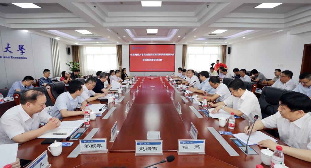 赵忠秀、徐清军、初明锋共同为山东财经大学自由贸易试验区研究院揭牌。