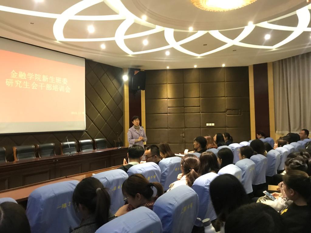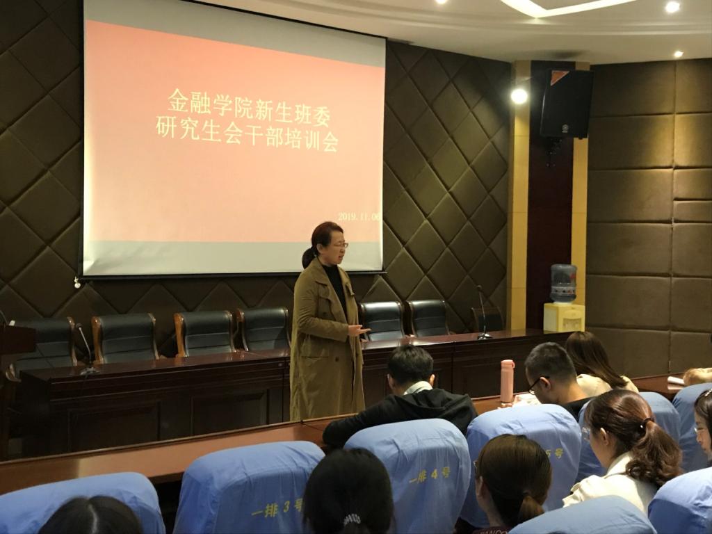 11月6日下午四点半,金融学院在舜耕校区金融楼学术报告厅举办金融学院新生班委研究生干部培训会。学院党委副书记范志毅,辅导员许静参加培训会。学院第八届研究生会以及新生班委成员。