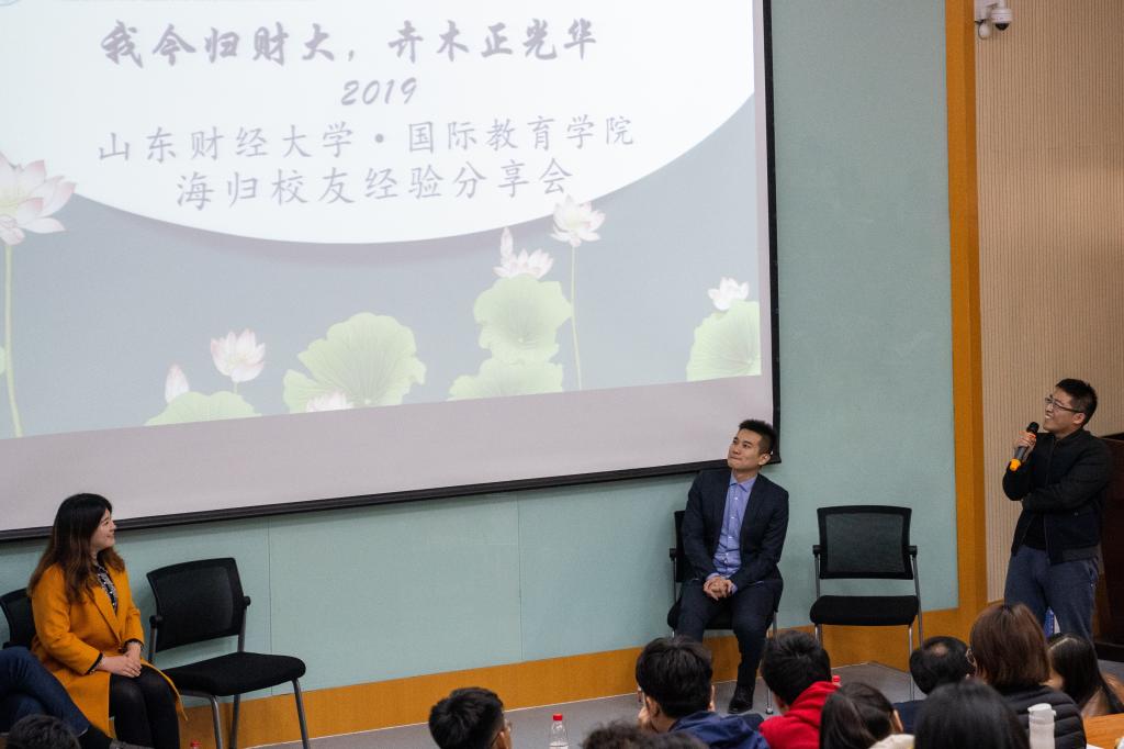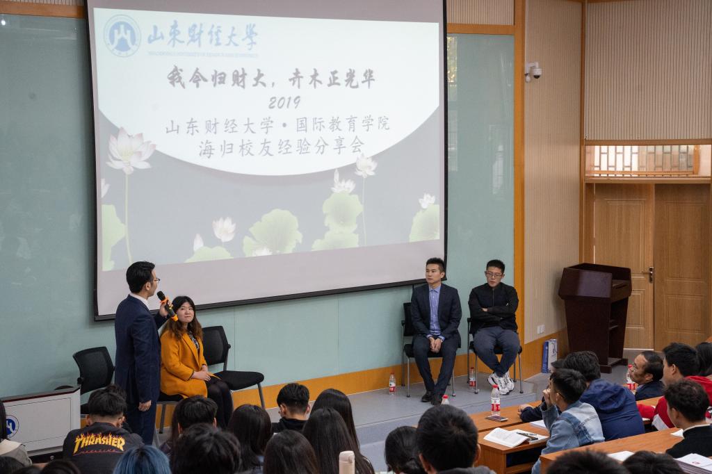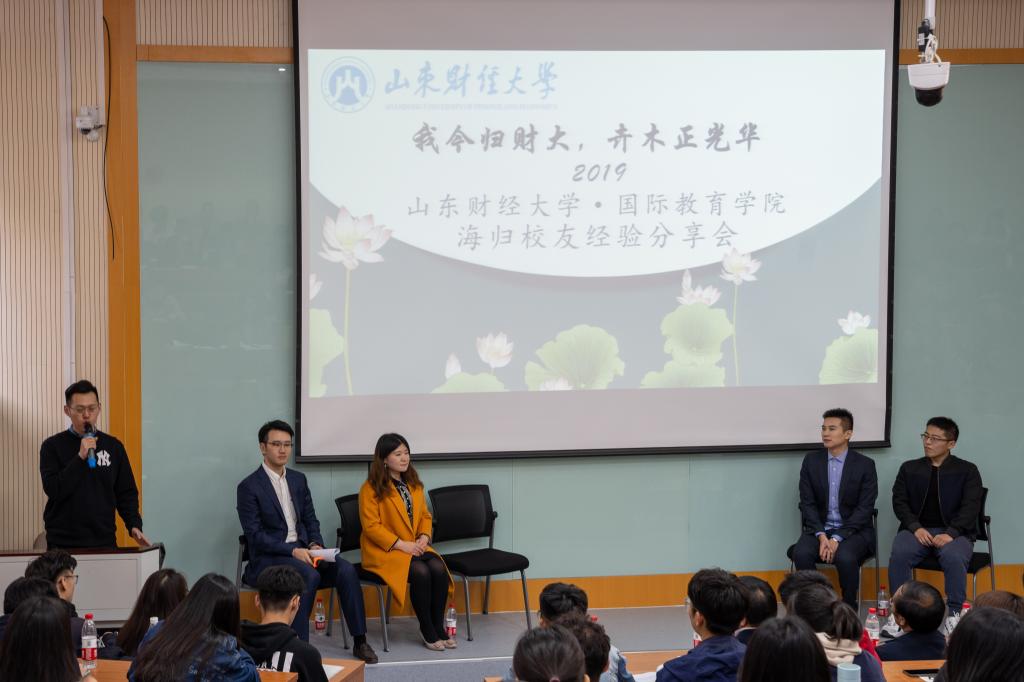 为了进一步加强学院特色文化建设,增进学院与校友的之间的交流和联系,国际教育学院于11月10日在舜耕校区第三阶教室举办2019年海归校友论坛。出席的领导和老师有山东财经大学合作发展处处长刘奇耀、国际教育学院党委书记张建和团委书记钟毓卓,论坛特别邀请了国际教育学院4名优秀校友,分别是2010级中加项目孟令辰、2011级中加项目韩淼旭、2013级汉教专业曲逸飞、2014级中新项目李响。论坛由2015级中加项目杨馥瑞主持。