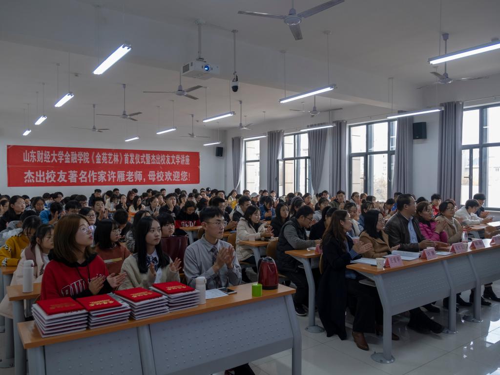 11月21号下午,金融学院在圣井校区七号楼举办了学院文学期刊《金苑艺林》首发仪式。金融学院党委书记、刊物主编吴红文,杰出校友、知名作家许雁(笔名:宁馨儿),金融学院老师、刊物执行主编庄爱华,学院团委书记陈静,学工办主任孙琦,辅导员徐洁,辅导员、助理主编邵珠建参加仪式。