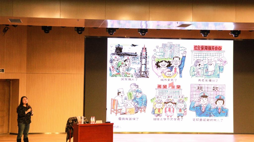 本次讲座以“税收与经济生活”为主题。高凤勤老师结合自身实际和一些娱乐圈的税收现象,引入了本次讲座的主题。