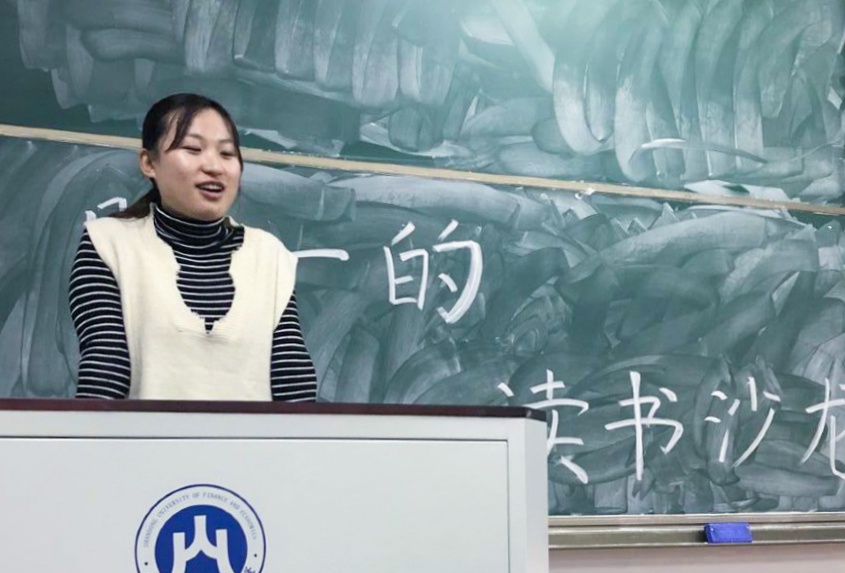 “以哭的方式笑,在死亡的伴随下生活”,王明婕同学分享了余华的经典著作《活着》,她认为,我们无法决定来去,只能用心过好当下的每一分钟。