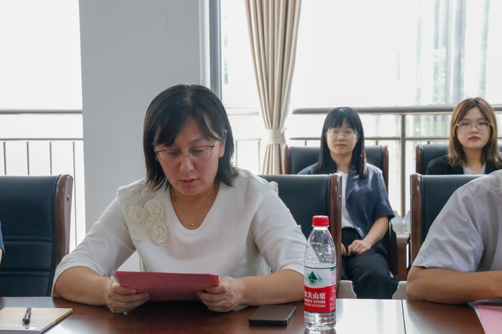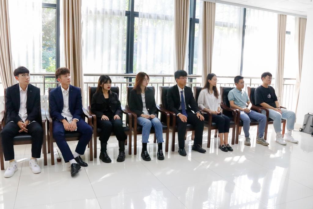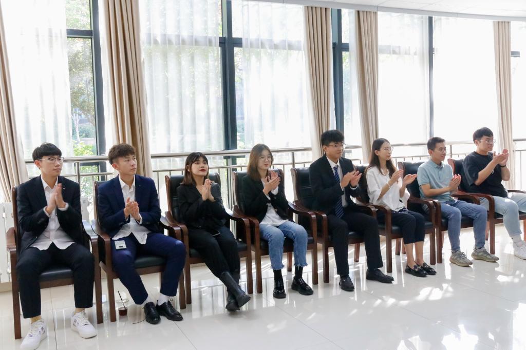 会议伊始,第九届学生会主席周欣圆同学回顾了过去学生会工作的进展、突破、创新和改革情况,表示学生会工作始终围绕国家政策,牢记打造品牌学院,踏实服务学生的理念,贯彻落实“三全育人”和“五讲四美三热爱”的工作要求,希望新一届学生会能够继往开来,赓续荣光。接着,陈静老师宣布第十届学生会主席及各部部长的学生名单。第十届学生会主席朱子强在发言中表达了对学生会未来的计划、展望与改革建设的设想,表示将继承发扬学生会全心全意服务学生的工作理念,带领学生会成员以身作则,精诚协作,脚踏实地,更上一层楼。