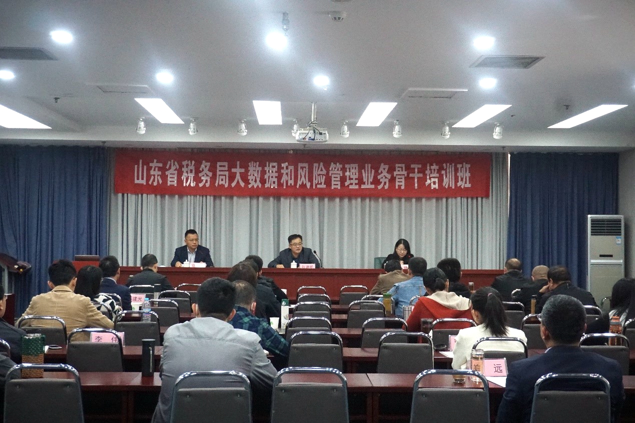 10月20日,财政税务学院承办的山东省税务局第四税务分局(税收大数据和风险管理局)税收大数据与风险管理骨干人才培训班开班仪式在天舜大厦隆重召开。税收系主任郭健教授主持开班仪式,山东省税务局第四税务分局张建明局长、财政税务学院院长马恩涛教授出席开班仪式并讲话。
