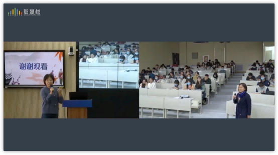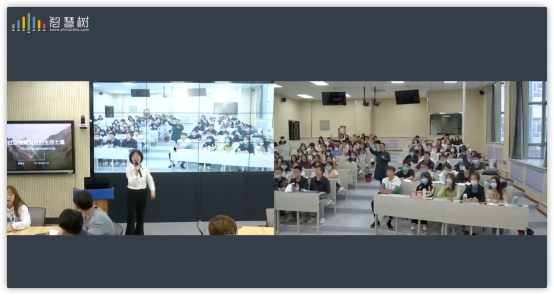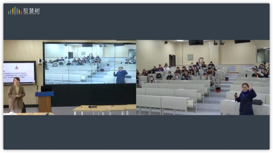 这种跨越时空的两校直播同步课堂,是公共管理学院学生和塔里木大学学生处在现代化的远程直播互动智慧教室里,通过“智慧树”远程直播互动调度系统,根据课堂教学需求即时切换两校课堂画面,塔里木大学的学生不仅能实时听到课程内容,还能举手发言,与公共管理学院师生一起积极参与课堂互动。