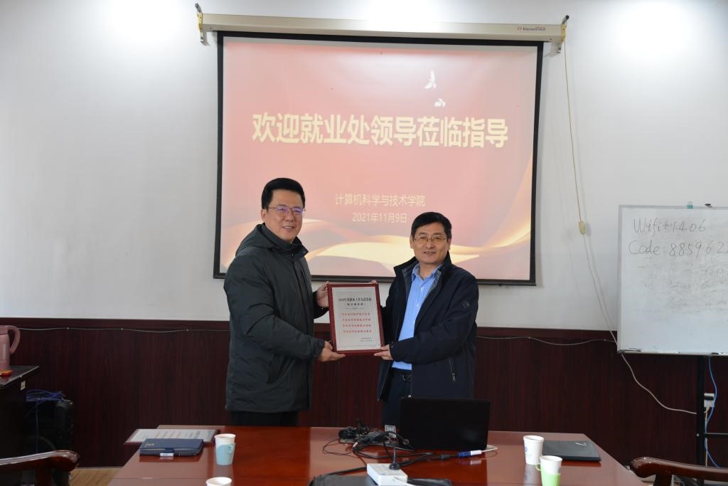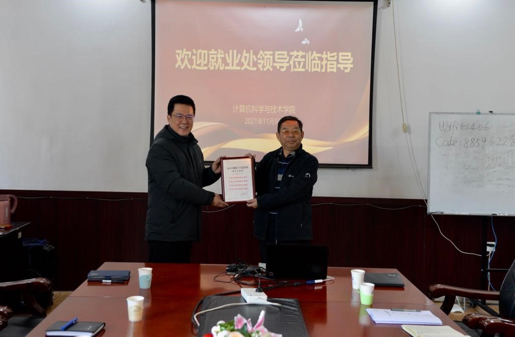 韩慧健表示计算机科学与技术学院始终高度重视毕业生就业工作,对就业处在全校就业精细化统计工作中的创新和付出,以及多年来对计算机科学与技术学院就业工作的指导和帮助表示由衷的感谢。他表示,此次就业处来访座谈带着荣誉奖杯而来,是对计算机科学与技术学院就业工作的肯定和认可。计算机科学与技术学院一直探索将荣誉和激励机制纳入各项工作之中,形成价值引导。下一步计算机科学与技术学院就业工作的重点将放在“练好内功”,进一步提升人才培养质量,依托“计算机文化节”等品牌活动,加强学生、学科、人才培养的对外宣传,吸引更多优质企业来院招聘;进一步加强产学融合,项目合作和转化,为学生职业能力提升和高质量就业提供更优质平台。