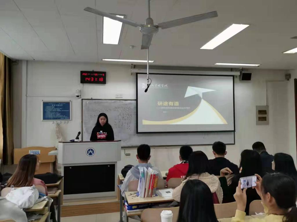 张晓宁就研究生的角色转化与论文写作主题两方面展开分享,主要谈到了课堂学习、团队学习、自主学习等方面心得。她讲到课堂知识要学以致用,寻找与自身研究内容的衔接点。每周组会,做好充足的准备,积极与老师和同学交流并虚心接受建议和指正。而后,向同学们详尽地介绍了如何完成一篇论文的写作,具体到确立选题、数据分析、写作方法、投稿注意事项、修改意见回复等,对同学们有很大帮助。
