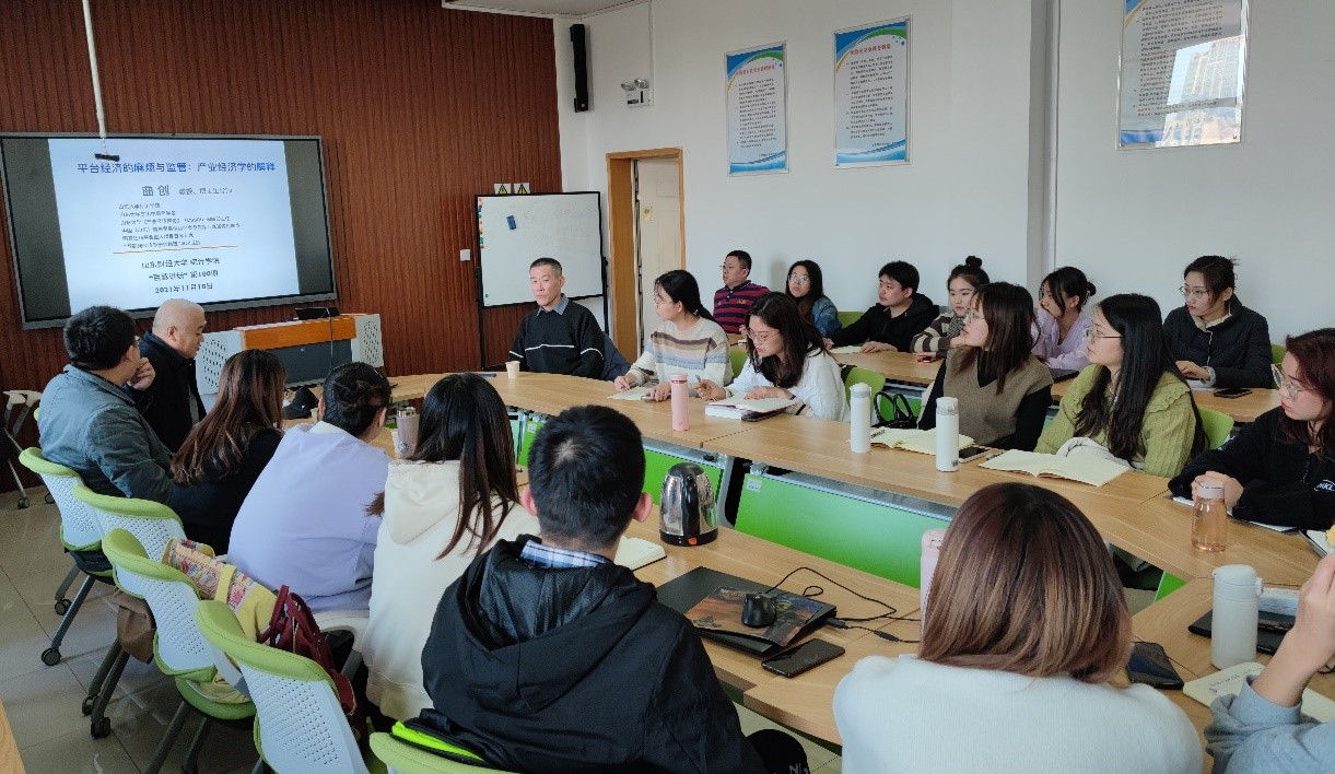 报告会后,曲创教授就典型数字平台案例与老师、同学们进行了深入交流。曲教授的讲座内容充实,层次鲜明,语言生动诙谐。报告会的成功举办,使我院师生更加深刻认识了平台经济的发展脉络与当前平台经济的竞争问题,激发了同学们对数字平台经济领域的研究兴趣,得到了参会师生的积极反响。
